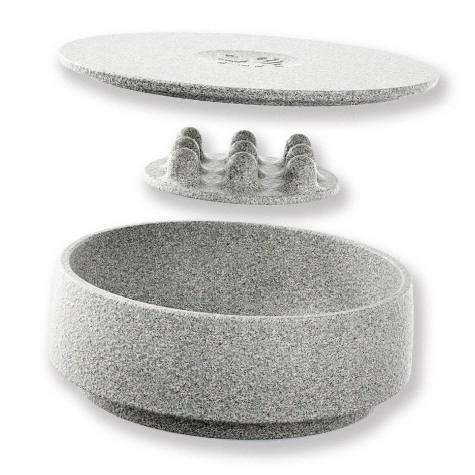 Die von DENK KERAMIK entwickelte Granicium Granitkeramik ist metallfrei, frei von Weichmachern und lebensmittelgeprüft. Es sind keine Allergiereaktionen bekannt. Um feinstmögliche Oberflächenstrukturen zu erreichen, werden bei der Herstellung der Fressnäpfe effektive Mikroorganismen (EM) zugegeben. Damit „fermentiert“ die Keramikmassem, was eine sanfte Rauheit der Oberfläche erzielt. Zusätzlich wird Rutil in die Keramik gemischt – das Mineral erhöht die Hitze-, Druck- und Chemikalienbeständigkeit des Gefässes. Durch den fotokatalytischen Effektt werden Bakterien und Viren auf natürlichem Weg zerstört. Auch Geruchsbildung wird reduziert, z. B. wenn Futter länger steht.